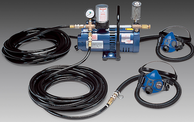 • Includes 2 half mask SARs, a 1/4 hp ambient air pump, 3/4 hp or 1 1/2 hp pump and 100' hose