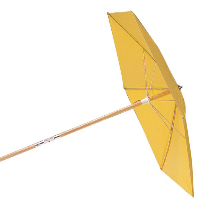 Using the same heavy-duty safety yellow vinyl as the Deluxe Umbrella, the Economy model uses a strong, pointed 84" (213.36 cm) two-part wood pole, is 68" (172.7 cm) in diameter and collapses to 4’ x 6" (1.21 m x 15.2 cm) in diameter.