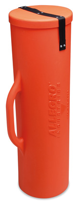 The Allegro 8" Plastic Storage Duct Canister holds 25 feet of 8" ducting and is constructed from Linear Low Density Polyethylene.  This lightweight container features a molded handle for easy transport with a lid secured with a strap and side release plastic buckle.  This orange canister is easy to transport.
