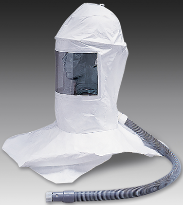 Get ultimate protection with the Deluxe Tyvek Double Bib Hard Hat Hood! The design of this unique low pressure disposable double bib hood offers even greater protection for workers by allowing extra space for a hard hat. The lightweight, rugged and reinforced down tube with swivel connection gives added flexibility. The split air channel design delivers air inside the hood around the temple area and the double bib style means increased protection. This hood is also very easy to use. Simply tuck the inner layer into protective clothing!