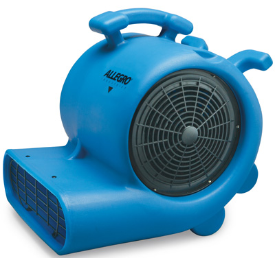 The Allegro 3 speed carpet blower is ideal for speed drying of wet carpets, pads, floors and walls.  The lightweight plastic housing is stackable for convenient storage.  The integrated carrying handle allows for easy transport.  The flat design of the outlet is handing when drying under carpets.
