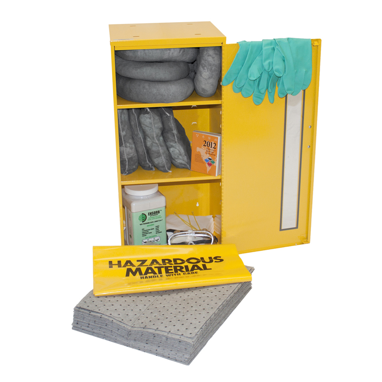 Wall mounted lockers are highly visible and provide immediate access to spill response equipment when time is a necessity. This large size has the ability to absorb up to 15 gallons of liquid. Universal absorbents will soak up any liquid they come in contact with, including water.