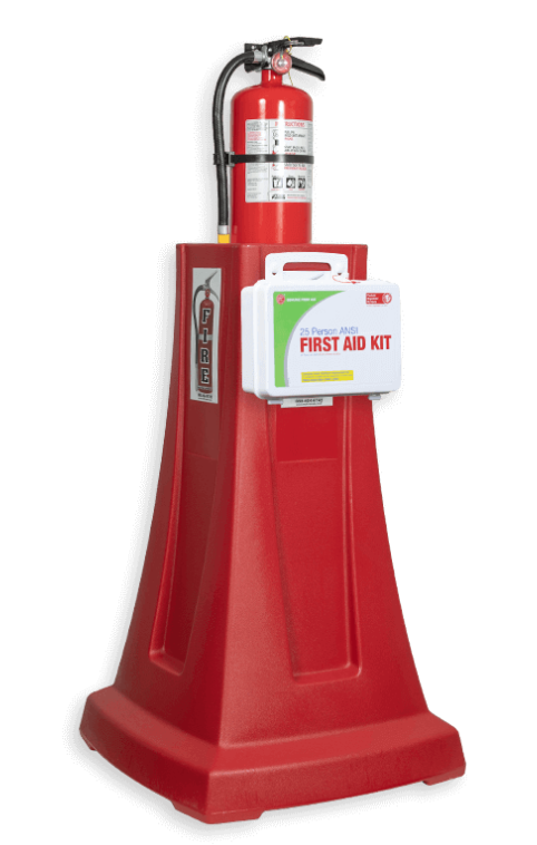 FireMate™ Red 34" Portable Fire Extinguisher Stand with 25-Person ANSI First Aid Kit - Sold Individually