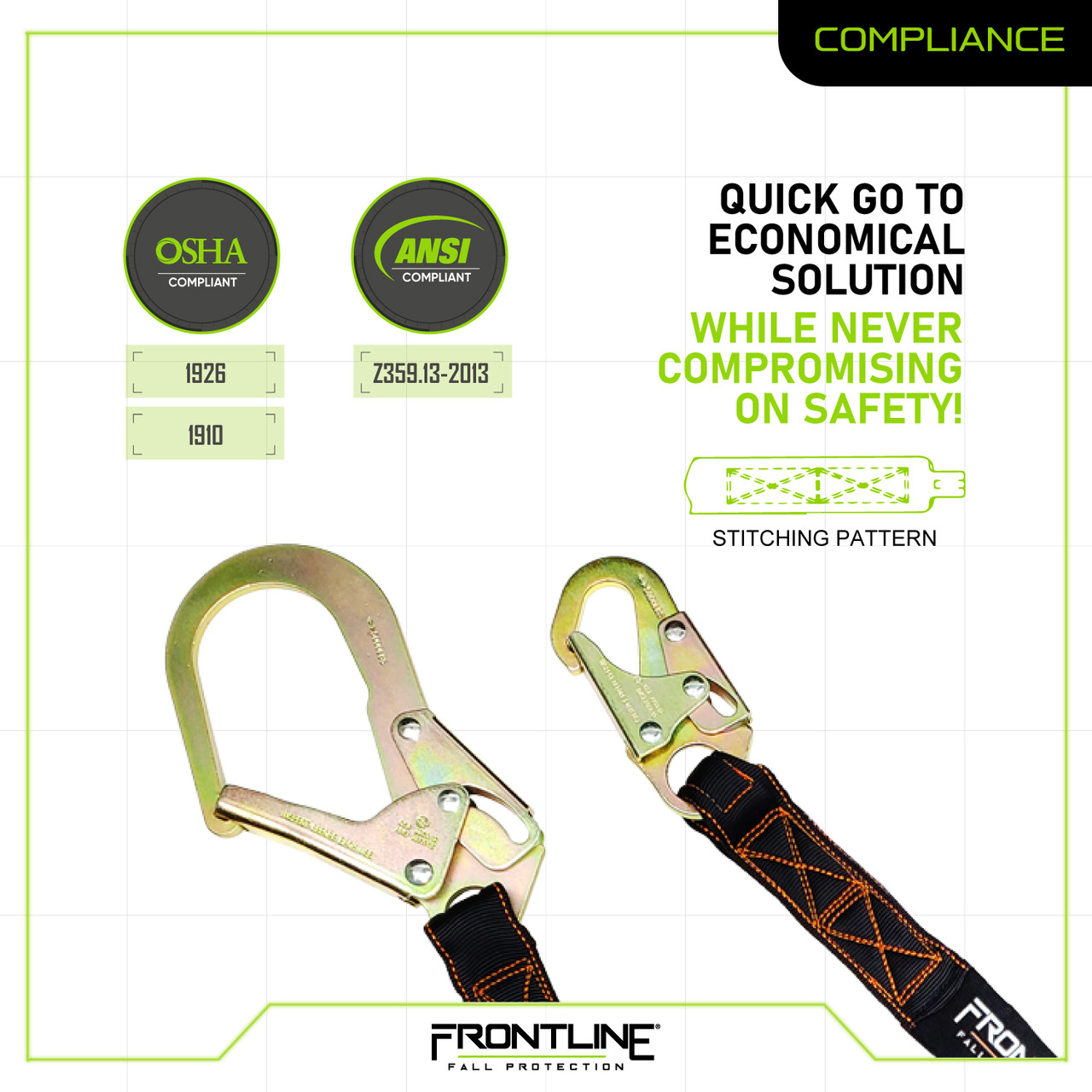 • Compliant with ANSI Z359.13-2013 & OSHA requirements