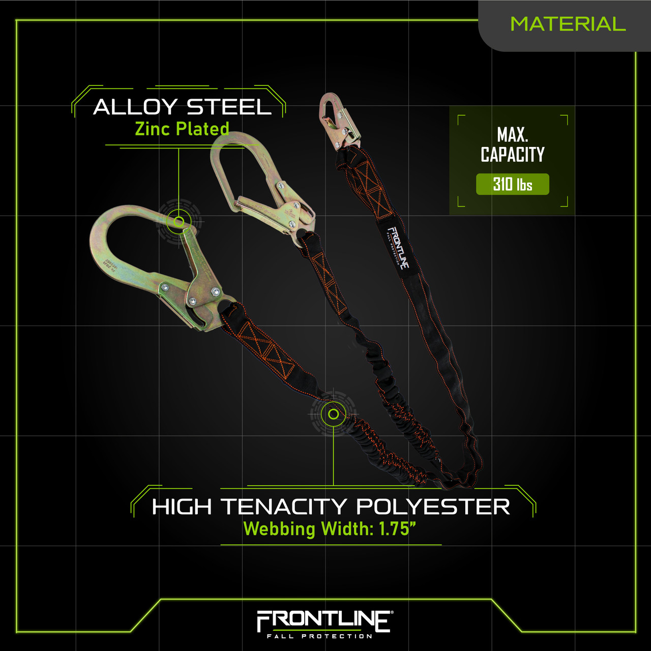 Frontline Combat™ 6' Twin Leg Rebar Hook Lanyard, Internal Shock Absorber