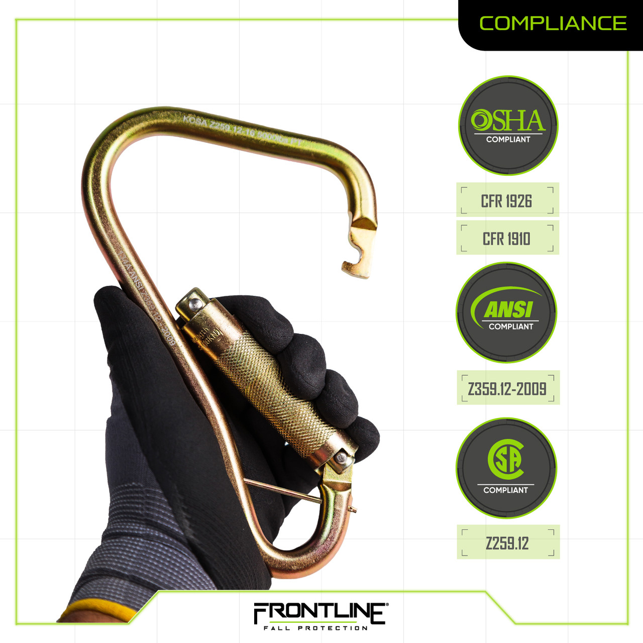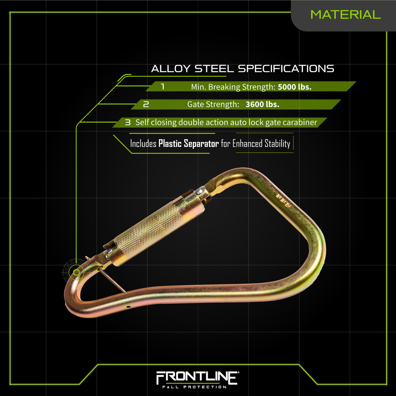 Frontline carabiners are engineered from premium-grade materials to endure extreme and demanding work environments! Frontline carabiners function as essential connection points between SRLs and appropriate anchoring locations.
