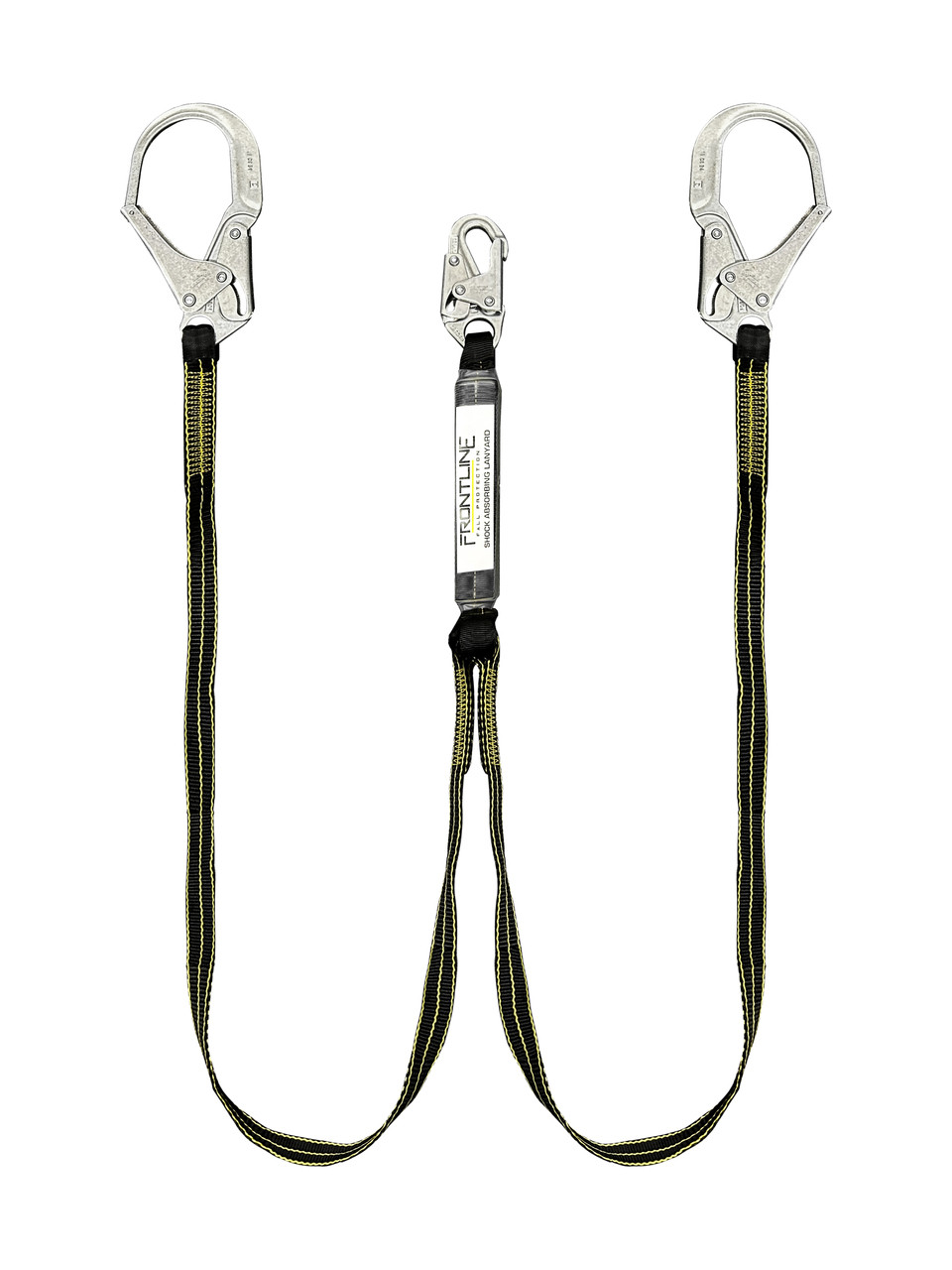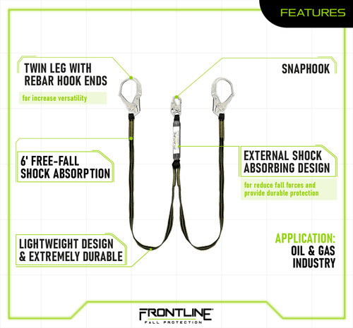 Frontline Oil & Gas 6' Double Leg Lanyard with Steel Rebar Hooks, Meets ANSI & OSHA