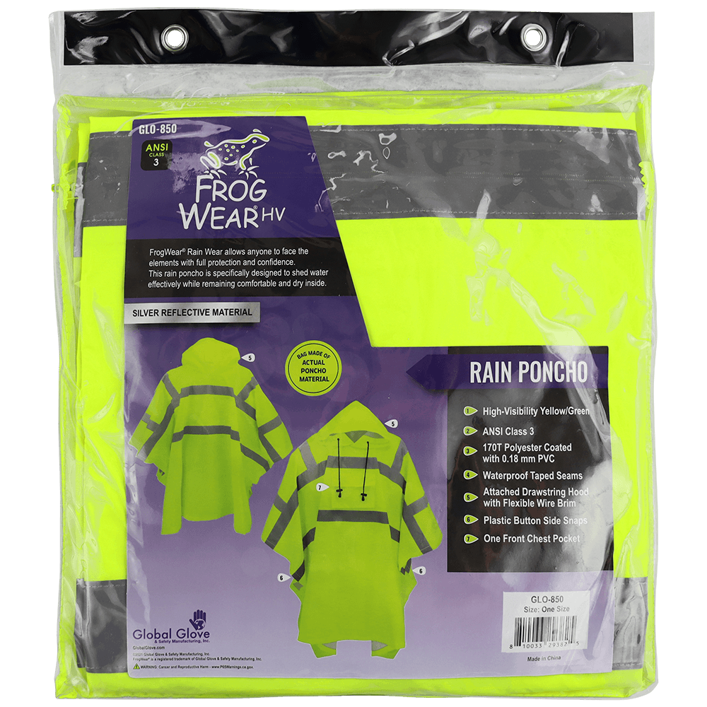 Global Glove® Frogwear® GLO-850 Class 3 High Visibility Yellow Polyester Rain Poncho