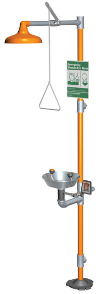 • A combination eyewash and shower station