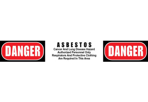 • Text on tape: Danger Asbestos Cancer and Lung Disease Hazard, Authorized Personnel Only, Respirators and Protective Clothing Are Required in This Area
