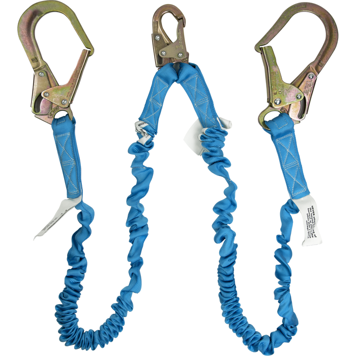 Ironwear® 2341 Double Leg Shock Absorbing Lanyard, 4' Stretch, 2 End Rebar Hooks, Middle Snap Hook