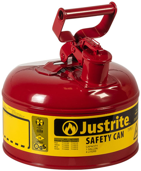 Justrite 7110100 Red 1 Gallon Steel Safety Can For Flammables, Type I with Flame Arrester