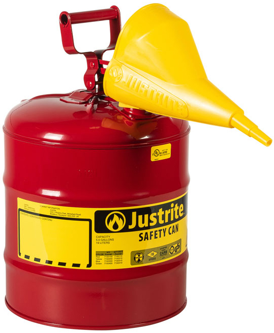 Justrite 7150110 Red 5 Gallon Steel Safety Can For Flammables, Type I with Funnel