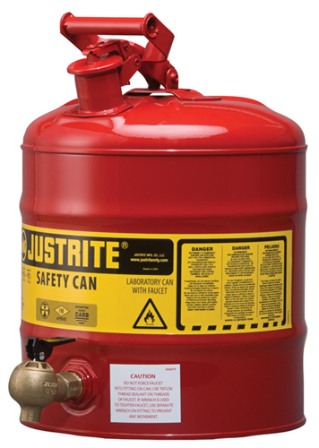 Justrite Type I Laboratory Safety Can with Stand, Bottom 08540 Brass Faucet, 5 Gallon