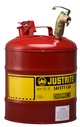 Justrite Type I Laboratory Safety Can, Top 08902 Brass Faucet, 5 Gallon