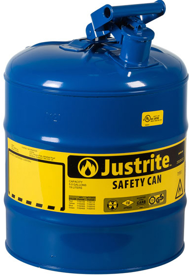 Justrite 7150300 Blue 5 Gallon Steel Safety Can For Kerosene, Type I