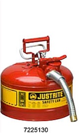 Justrite 7225130 Type II Safety Can w/ 1" Hose Dia, 2.5 Gallon