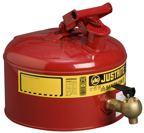 Justrite Type I Laboratory Can, Bottom 08540 Brass Faucet, 2.5 Gallon