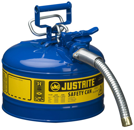 Justrite Blue Type II Safety Can, 1" Hose, 2.5 Gallon