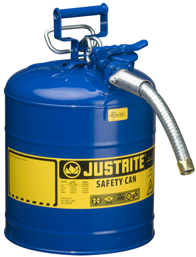 Justrite Blue Type II Safety Can, 1" Dia. Hose, 5 Gallon
