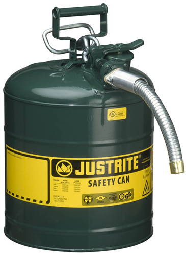 Justrite Green Type II Safety Can, 1" Hose, 5 Gallon