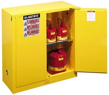 Justrite 893020 Sure-Grip EX 30 Gallon Flammable Safety Cabinet, Yellow, Self Closing Doors
