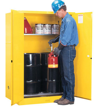 For storage of larger quantities of flammable solvents, the heavy-duty Drum Safety Cabinet is available in many styles and sizes. Built to the same high standards as the smaller Classic Safety Cabinets, a reinforced liquid-tight sump contains spills. An array of drum accessories and equipment is available to ensure safety and convenience when storing and handling drums of hazardous materials.