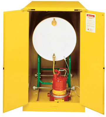 For storage of larger quantities of flammable solvents, the heavy-duty Drum Safety Cabinet is available in many styles and sizes. Built to the same high standards as the smaller Classic Safety Cabinets, a reinforced liquid-tight sump contains spills. An array of drum accessories and equipment is available to ensure safety and convenience when storing and handling drums of hazardous materials.