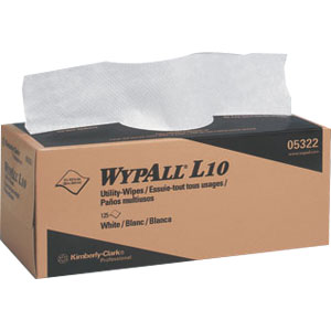 The Kimberly Clark WYPALL L10 Wipers work very well for single use light applications. Spray and wipe jobs, glass cleaning absorbs small liquid spills, dairy wiping and final assembly applications. Includes 18 packs of 125 wipers. Sheet Size: 12" x 10.25", Color White.