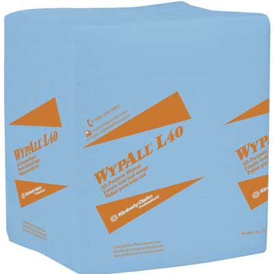 WYPALL* L40 Wipers in a quarterfold format. Ideal for routine industrial cleaning and maintenance. Removes soils and liquids from face and hands. Compact and efficient quartefold format for use anywhere. Blue color for task wiping.  Includes 12 boxes of 56 wipes each.