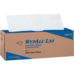 Kimberly Clark 05816 Wypall L30 Wipers, White - 6 Boxes of 120/Case