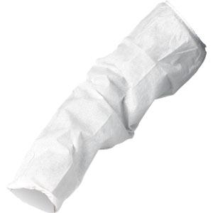The Kimberly Clark KleenGuard A20 Sleeve Protector feature breathable particle protection. They are white, 21" in length and feature an elastic top, are abrasion resistant. The patented Microforce fabric protects against dry particulates and light liquid sprays; NFPA 99 compliant antistatic material. These are sold 200 per case.