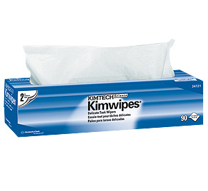 KIMTECH SCIENCE KIMWIPES Delicate Task Wipers are 2 ply and come in a convenient POP-UP Box. They offer a unique combination of low-lint tissue softness and multi-ply absorbency that's perfect for a multitude of delicate tasks. Multi-ply absorbency, wipes up liquid and dust. White color. 14.7 X 16.6" Sold by the case - 90 wipes/Pack 15 Packs/Case.