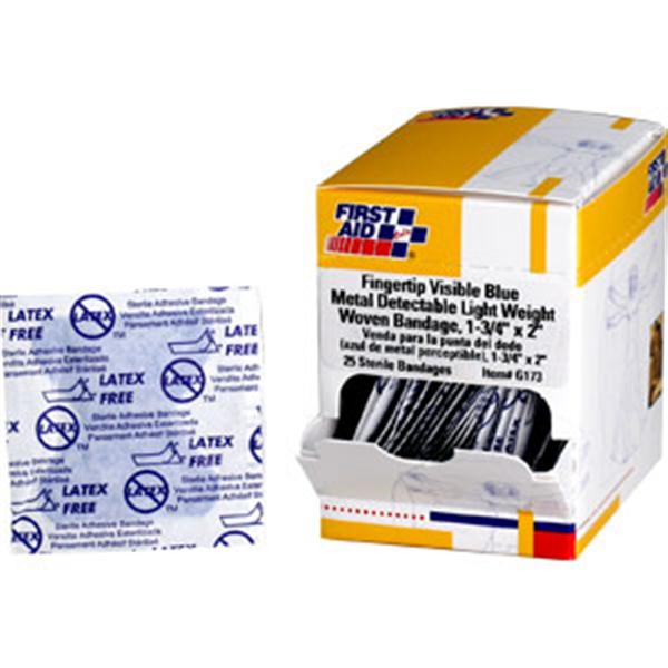 Metal Detectable Light Woven Adhesive Bandages - 1 3/4 in. x 2 in. Fingertip Bandage, 25/Box
