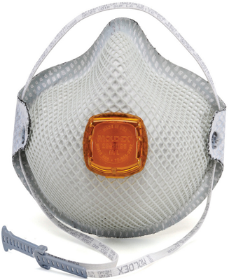 Respirators feature the Moldex Dura-Mesh shell, which resists collapsing in heat and humidity. It has a molded nose bridge that seals easily without a metal nose band. The naturally contoured facepiece and Softspun lining give the respirator added comfort and durability, as well as relieve pressure points. NIOSH certified to have a filter efficiency level of 95% or greater against particulate aerosols free of oil. The respirators are available with the Moldex HandyStrap with buckle that allows the mask to hang down around neck when not in use and they are available with a Ventex valve which lets the hot air out faster so workers stay cooler, or available with an added carbon layer to help filter out nuisance levels of ozone and organicĀ  vapors (less than OSHA PEL). Alternate shape offers a low profile, contoured shape that fits rounder facial features and flatter nose bridges. Respirators are Medium/Large and sold 10/Box.