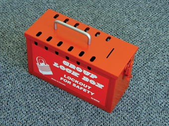 This Group Lock box insures that no one worker has access to the box unless all workers have removed their locks or tags. All keys for the machine are placed in the box with up to 13 workers each attaching a personal lock. Simplifies the lockout of large equipment. The box is made of heavy steel construction.