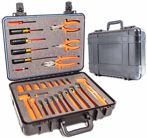 This kit is perfect for telecom and electrical technicians where protection from bodily harm is required. Other applications include military, aircraft and power plant maintenance. You get 29 double-insulated tools displayed in a die-cut case that simplifies quick tool accountability upon leaving a job. Tools are rated for 1000-V AC live line use.