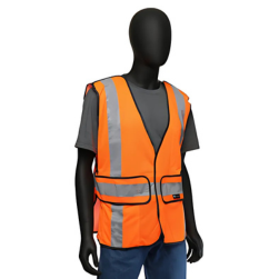 This High visibility orange mesh safety vest with 2" silver reflective tape meets ANSI Class 2 standards to ensure workers are completely visible. The adjustable hook and loop flaps keep the vest secured around the wearer. Includes 5 break-away points to keep the worker safe if the vest gets caught.