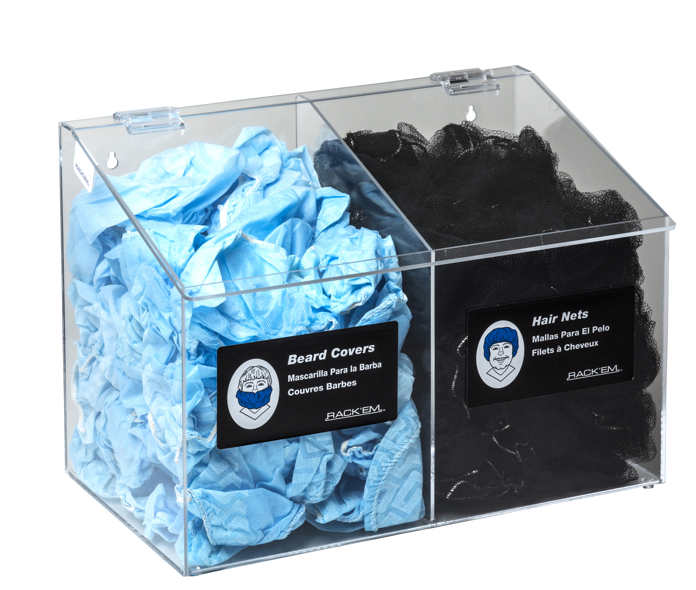 Rack'EmŽ 5121 Two-Compartment Clear PPE Dispenser, Holds Beard Covers, Hair Nets, Shoe Covers and Other PPE