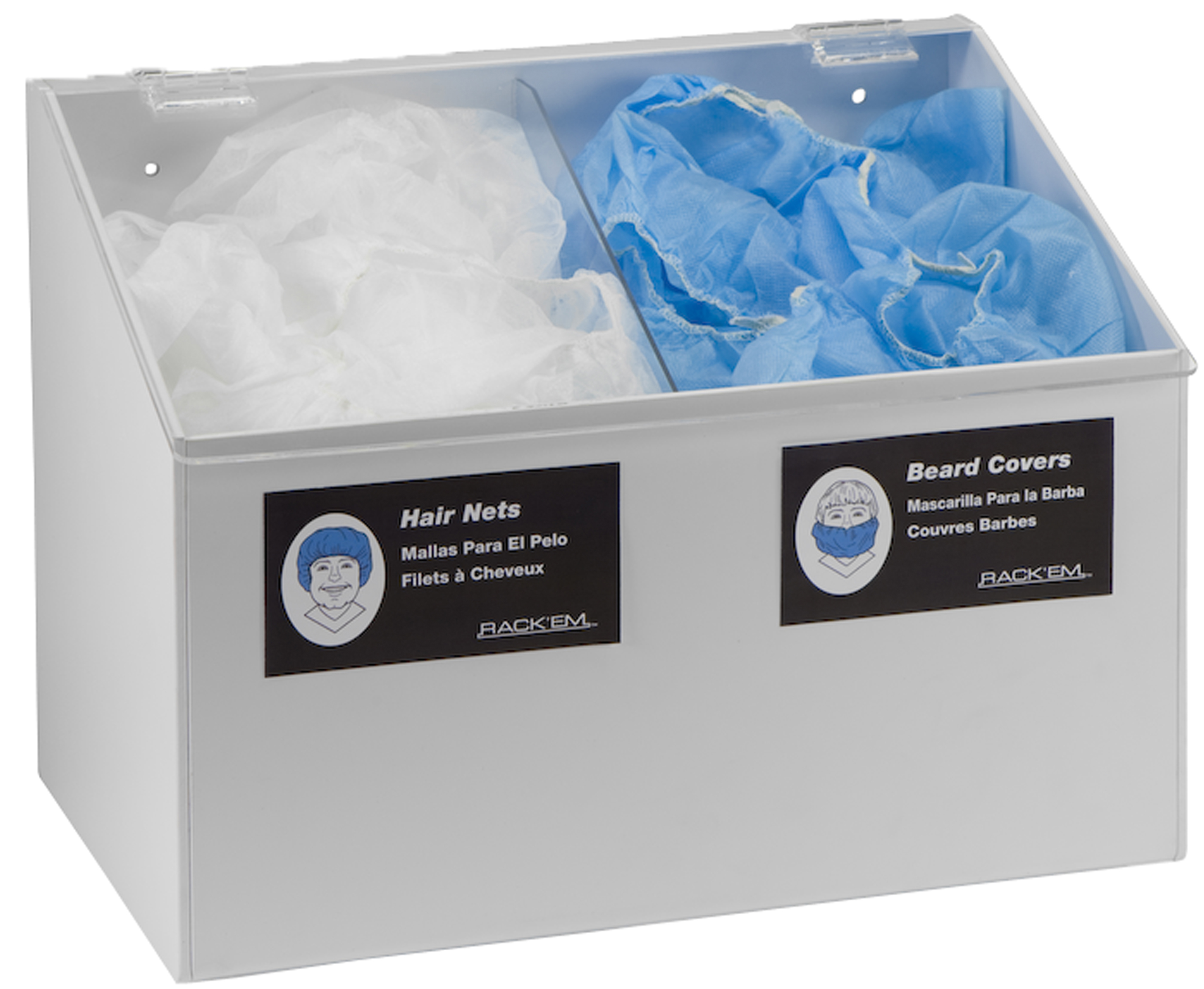 Rack'EmŽ 5122W Two-Compartment White PPE Dispenser, Holds Beard Covers, Hair Nets, Shoe Covers and Other PPE
