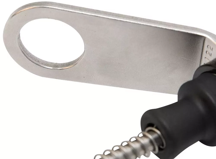 • Materials: Stainless steel body and D-ring, plated steel cap, nylon trigger, polyester label cover