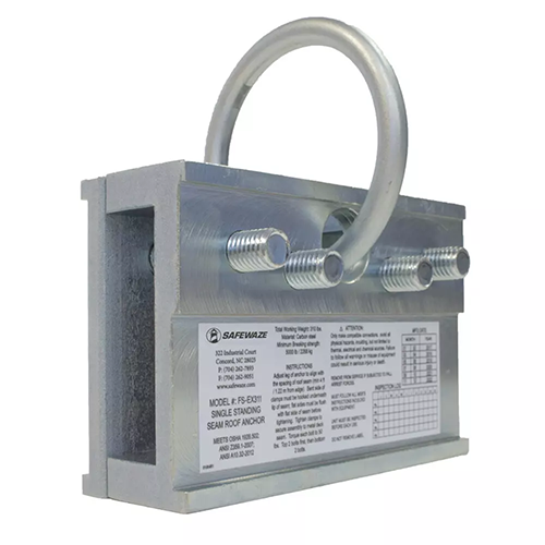 The Safewaze Standing Seam Roof Anchor is designed for use on both sloped and flat standing seam roofs.  Anchor is compact and non-penetrating.