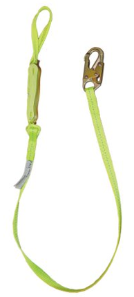 • Materials: 1" Nylon webbing; Polyester thread grade 10; Forged steel snap hook: 3600 lbs Gate-rated, Min breaking strength > 5000 lbs; Shock absorber
