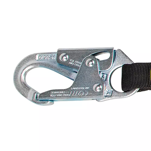 • Materials: 1" Polyester webbing; Polyester stitching grade 10; Forged steel snap hooks: 3600 lbs Gate-rated, Min breaking strength > 5000 lbs; Shock absorber