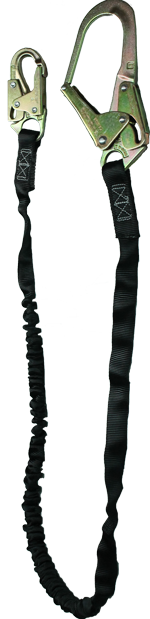 Fall arrest lanyard one rebar hook (attaches to anchor point) and one snap hook (attaches to harness D-ring).  Rebar hook designed to fit Symons Form.  Streamline shock limits fall to 3.5 ft.