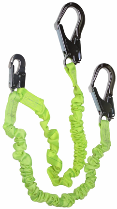 Safewaze Extreme FS596 6' Stretch Low-Profile Shock Lanyard w/Rebar Hooks, Dual Leg