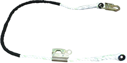 • Materials: 0.63" PolyDac rope, Forged steel snap hook:  3600 lbs rated; Min breaking strength > 5000 lbs, Nickel-plated steel rope grab, Thimble
