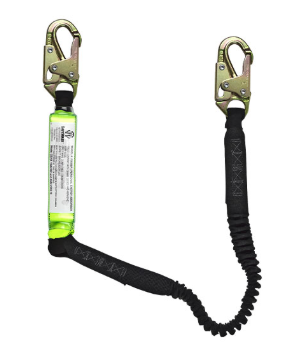 The SafeWaze FS570 is a combination high profile energy absorbing lanyard with an elastic leg that stretches lanyard from 4′ to 6′ in length and has a forged snap hook on both ends.  The clear shock pack ensures easy label inspection.