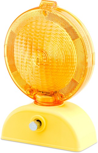 Fits all barricades and barrels. Features a 7” diameter Lexan® lens and a polyethylene case for practically unbreakable quality and durability. Flashes 55 to 65 times per minute. LED model uses four D cell batteries. Solar switch allows longer battery life – turns on at dark, off at light.