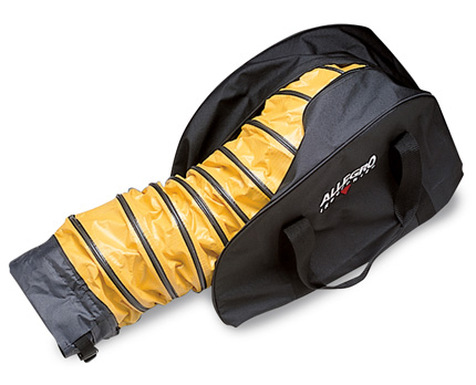 Great for easy storage and transportation, this polyester bag features a cylinder shape for tight controlled fit that will hold either 8" or 12" - 20" ducts. Can hold up to 25'. This black bag features a double zipper for ease of access, reinforced carry handle and shoulder strap. Choose your duct diameter above.